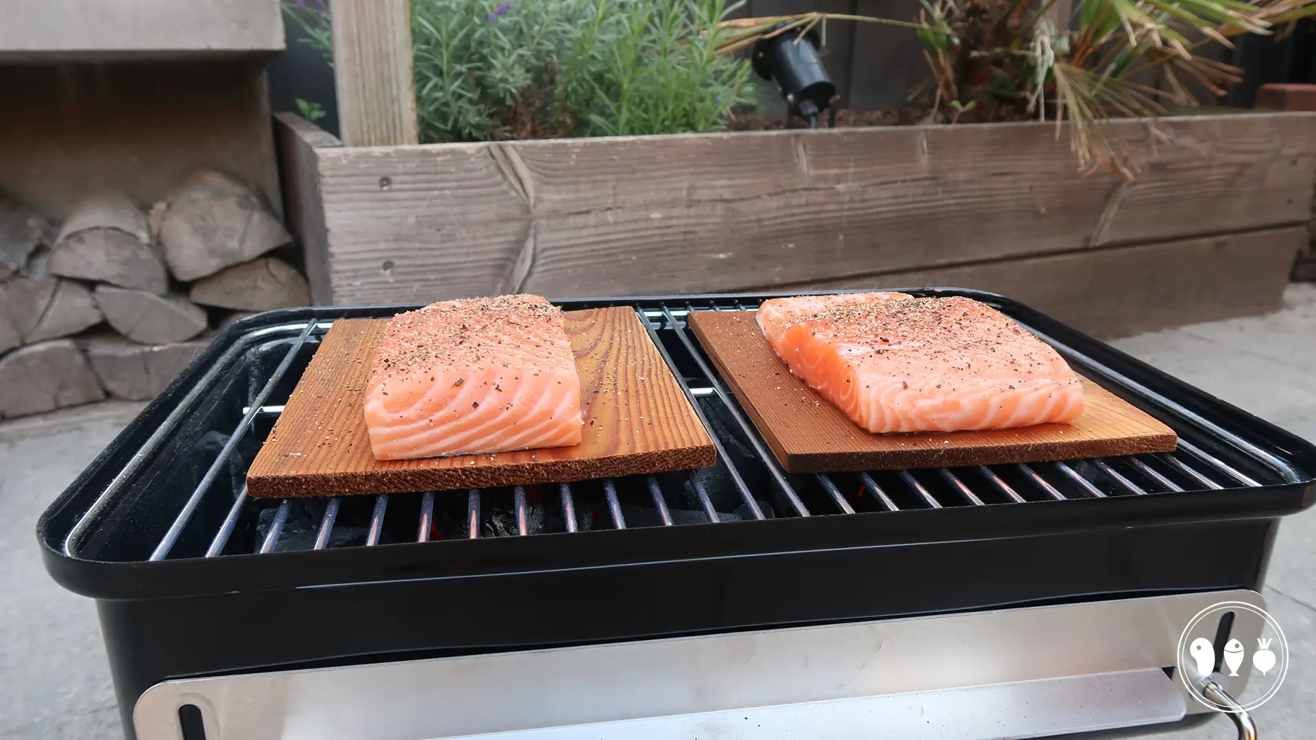 Onze zalm hebben wij dit keer gerookt op een cederhouten plankje. Hiermee tover je in no time een heerlijk stukje gerookte vis van je BBQ. Deze manier van bereiden is ook enorm geschikt voor op vakantie/camping. Je propt zo’n plankje namelijk zo tussen je handdoeken in je koffer! Hoe perfect is dat!
