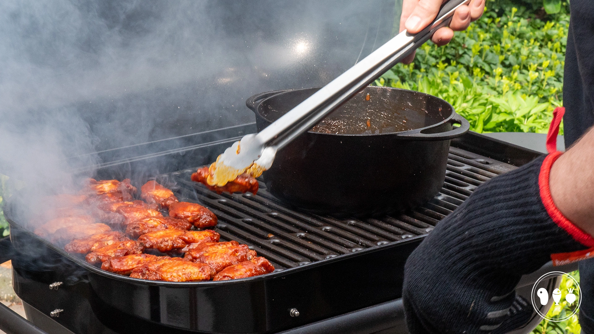 Kippenvleugels grillen wij meestal indirect gaar en daarna leggen we ze nog even direct voor dat heerlijke knapperige velletje. Voor de buffalo wings doen we het anders. We bereiden de kip in 3 stappen. Eerst roken we de vleugels, daarna stoven we de kippenvleugels in een zoet pittige saus waardoor ze een heerlijke smaak krijgen en enorm mals worden. Als laatste stap geven we ze nog even een wat directe hitte zodat ze ook zo’n knapperig velletje krijgen. Deze combinatie zorgt voor een onvergetelijke ervaring.