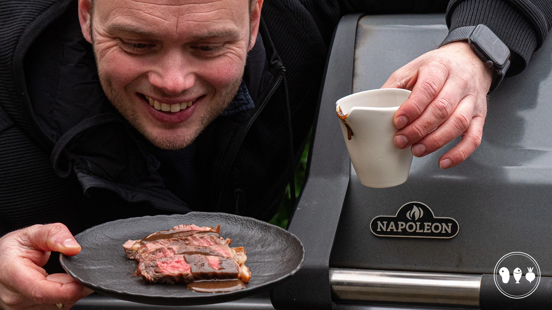 De entrecote zelf tillen we ook naar een hoger niveau. Dit doen we door simpelweg veel grillmarks te creëren, een mooie ruit zoals dat vaak wordt genoemd. Een grillmark ziet er niet alleen goed uit, maar heeft ook een functie. Wanneer het vlees het hete rooster raakt, ontstaat er een Maillard-reactie. Dit zorgt ervoor dat het vlees bruin kleurt en een krokant korstje krijgt. Lees: méér smaak! En dat willen we natuurlijk zoveel mogelijk. Daarom draaien we elke twee minuten het vlees een kwartslag. Hierdoor ontstaat een mooie ruit én extra smaak. Benieuwd hoe je deze smaakbom zelf maakt? Check hieronder recept en probeer het zelf op de BBQ!