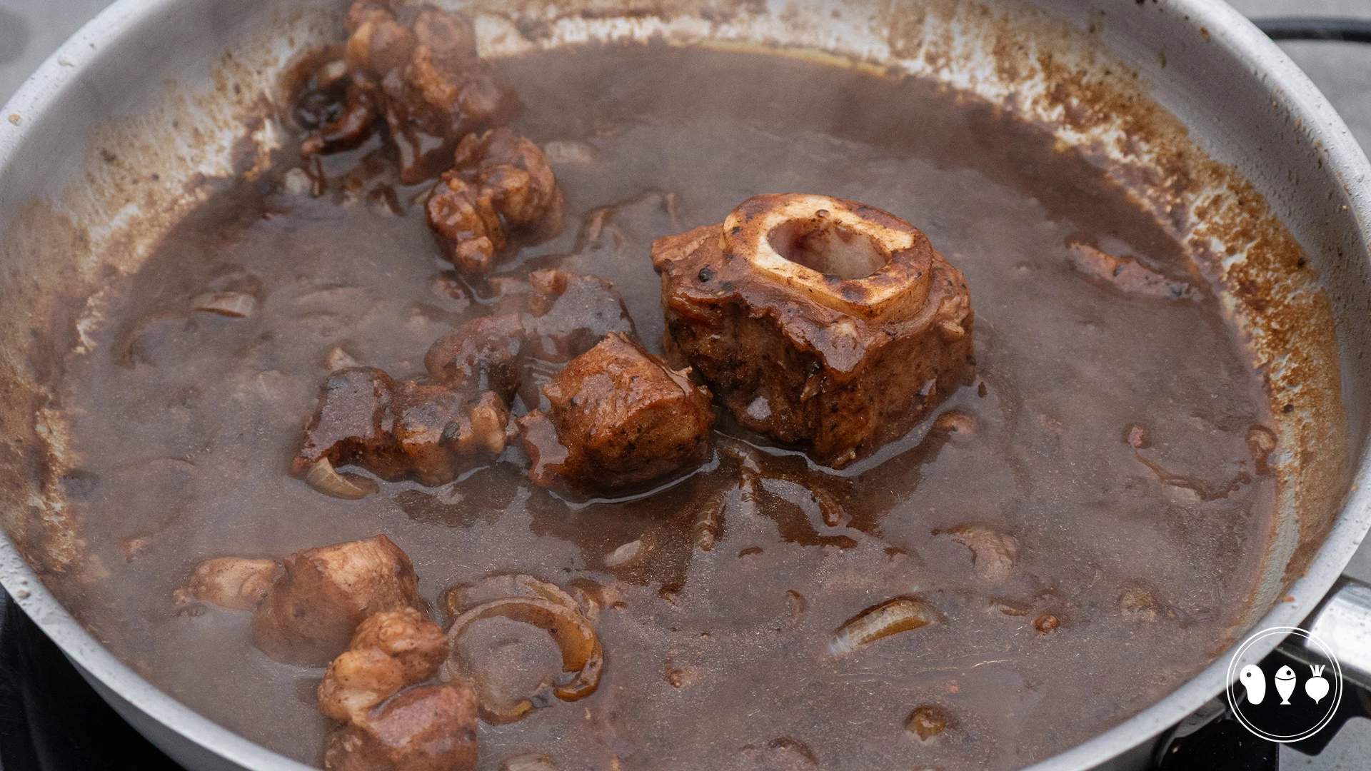 Allereerst gaan we de jus maken. Kook alvast wat water om de bouillon aan te maken, maak sowieso een beetje extra om de jus eventueel te verdunnen als het nodig is.