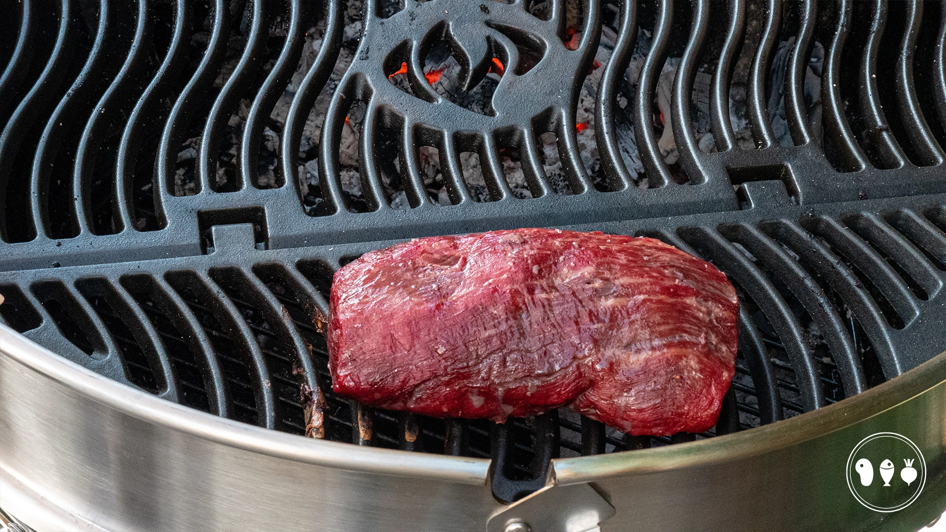 We gaan de ossenhaas indirect grillen. Leg de ossenhaas in de indirecte zone (weg van de kolen) en sluit het deksel. Wij grillen deze tot een kerntemperatuur van ongeveer 50°C.