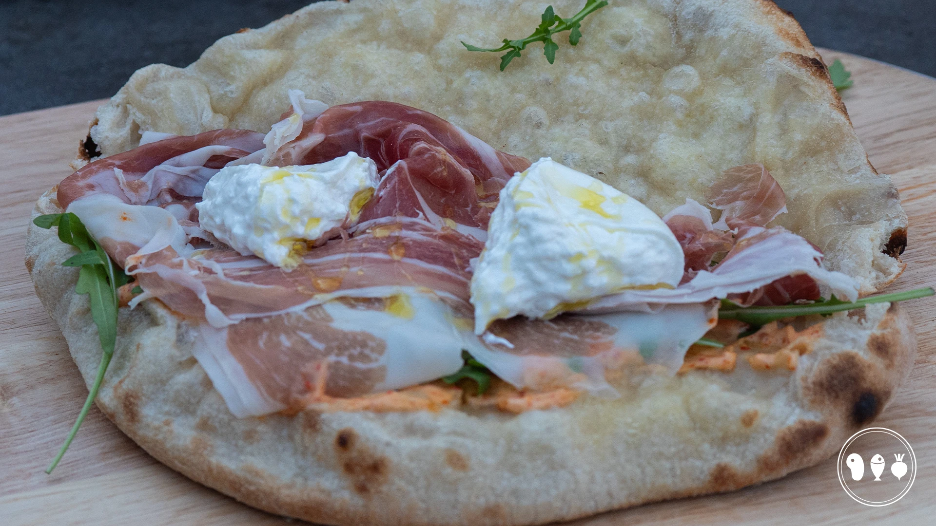 Pizza sandwich met prosciutto en burrata