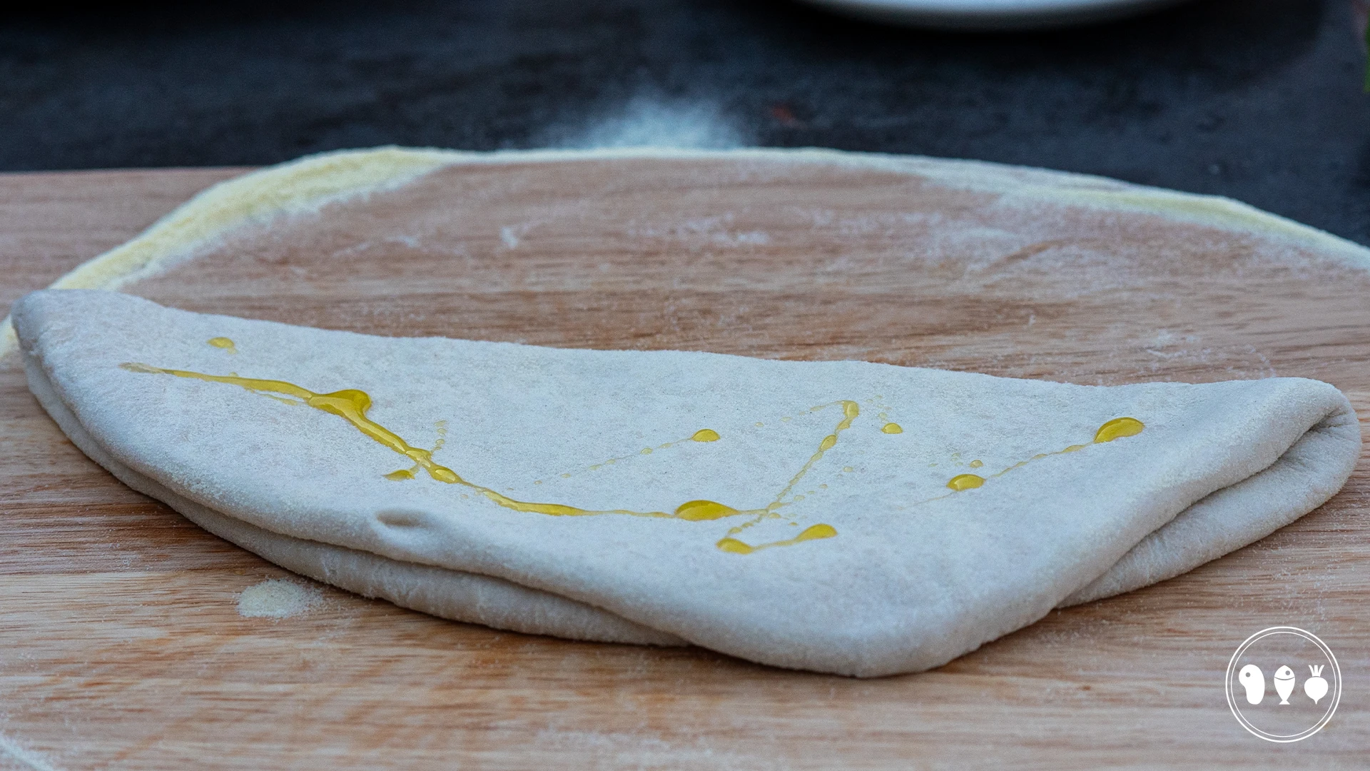 Doe een beetje olijfolie over de bodem en klap hem dubbel. Doe ook een beetje olie over de bovenkant.