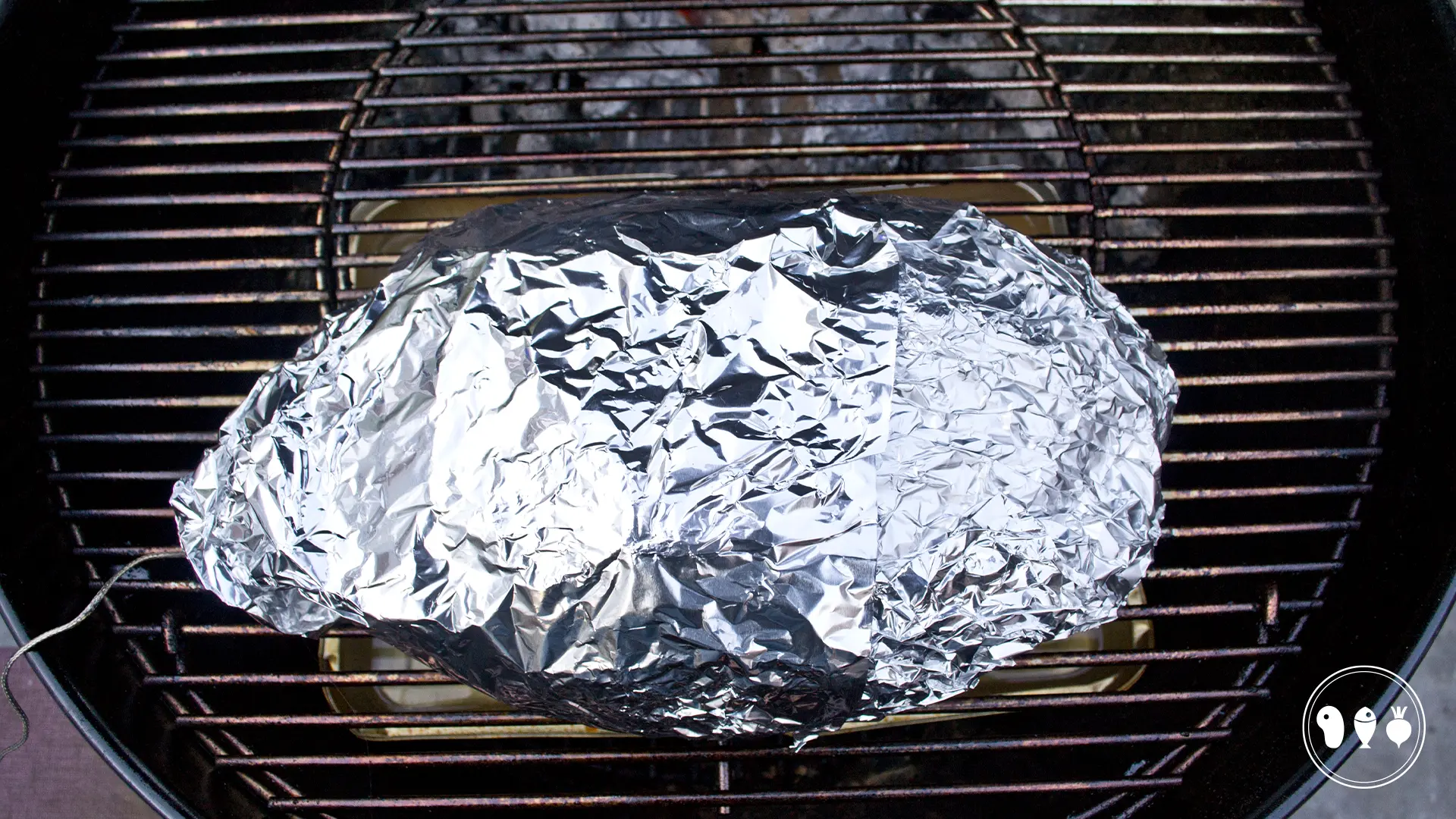 Als de procureur eindelijk een kerntemperatuur van 70 graden heeft bereikt, wikkel je hem in aluminiumfolie en leg je hem terug op de BBQ.