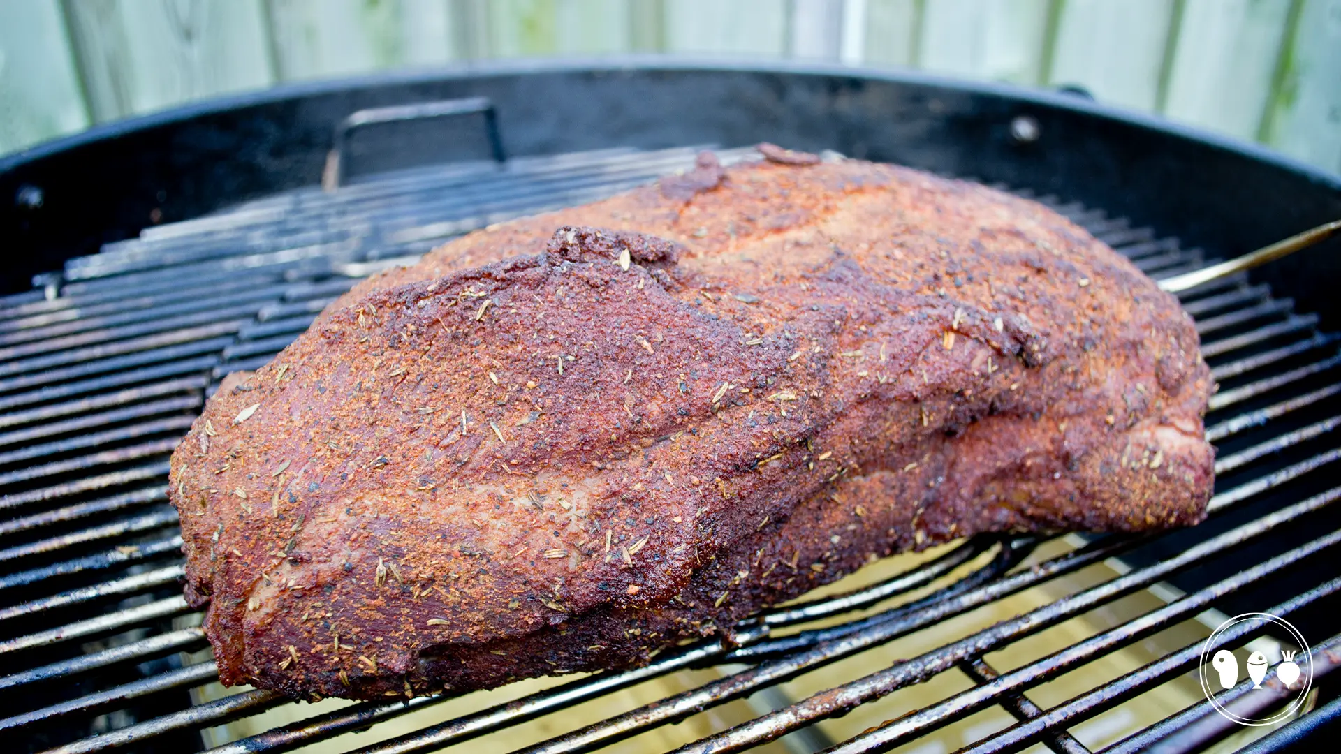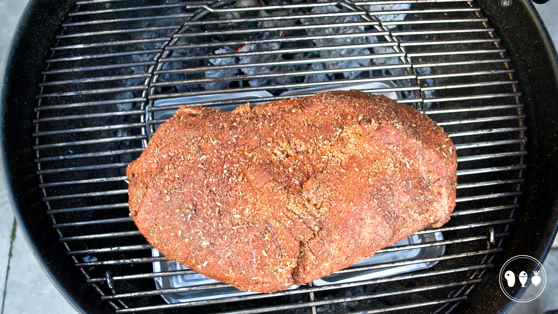 Maak de BBQ gereed voor indirecte bereiding op een temperatuur van 110-120 graden (kolen aan de ene kant, lekbak aan de andere kant).