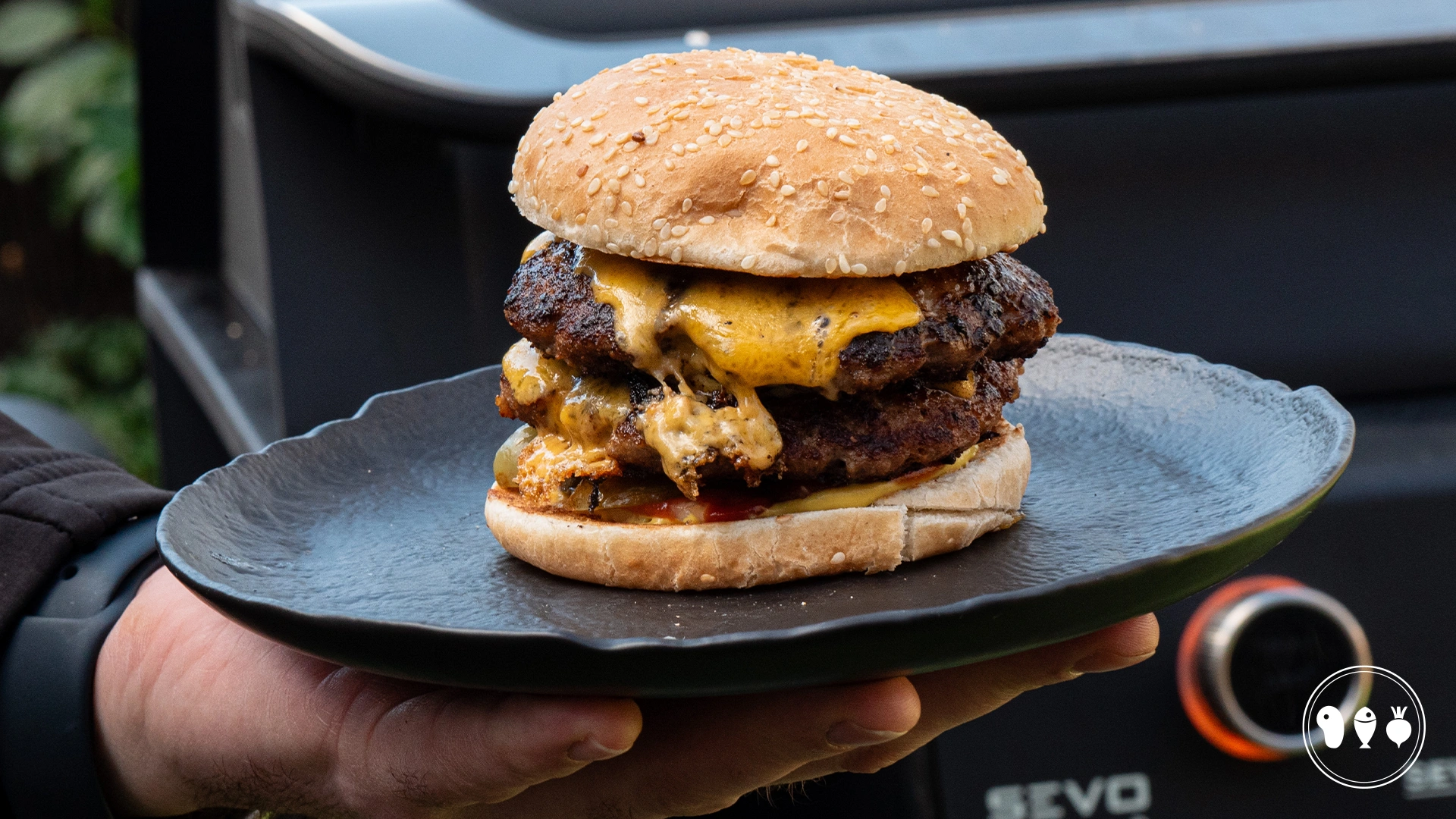 Deze burger noemen we niet voor niets de Snelle Sevo Smashburger. Allereerst bereiden we deze burger op een gietijzeren plancha op de elektrische BBQ van Severin: de SEVO Smart Control GT. Een snelle burger bereid op een de elektrische BBQ, gemakkelijker gaat het niet worden. Dit is dus een ideaal recept als je echt heel weinig tijd hebt maar toch echt een klein feestje voor jezelf wilt bouwen. En dat mag altijd vinden wij. En de naam allitereert ook gewoon lekker.